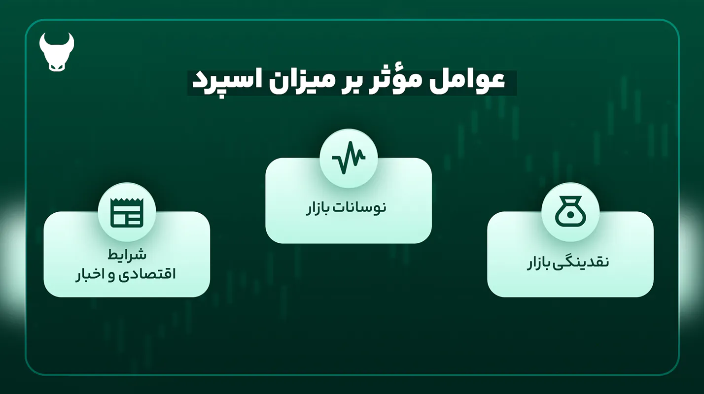 میزان اسپرد در بازار فارکس، تحت‌تأثیر عوامل مختلفی قرار دارد که مهم‌ترین آن‌ها عبارت‌اند از: