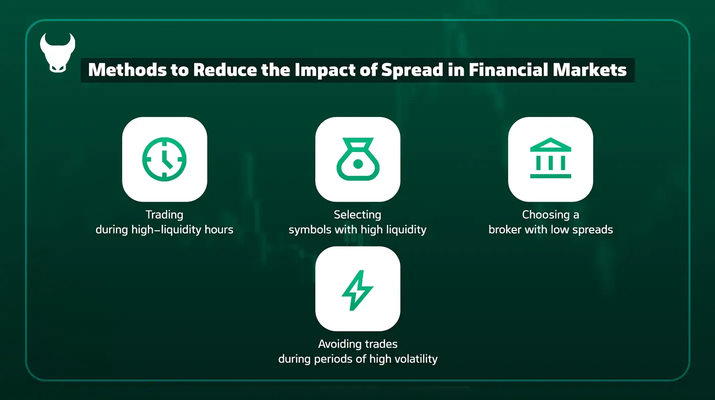 A trader cannot directly change the spread itself, but can reduce trading costs by following these methods: